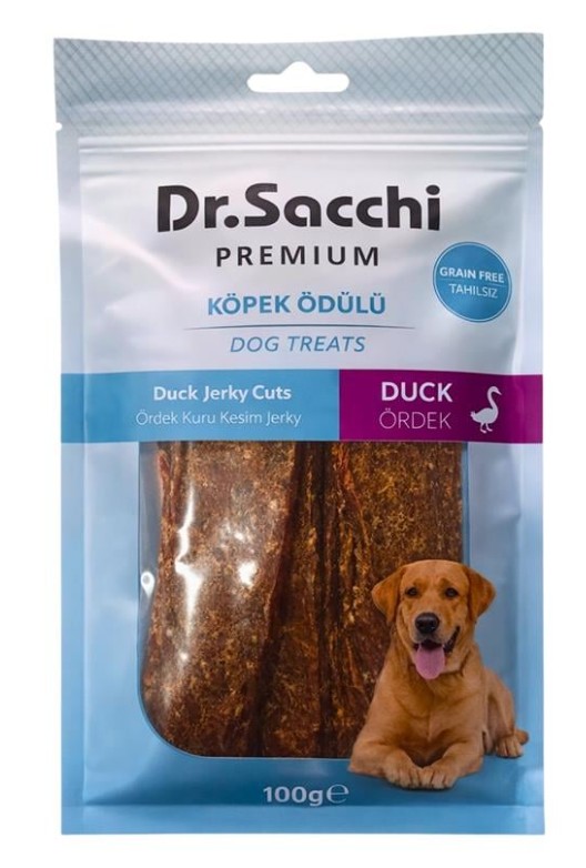 Dr.Sacchi Premium Ördek Kuru Kesim Jerky Tahılsız Köpek Ödülü 100 Gr
